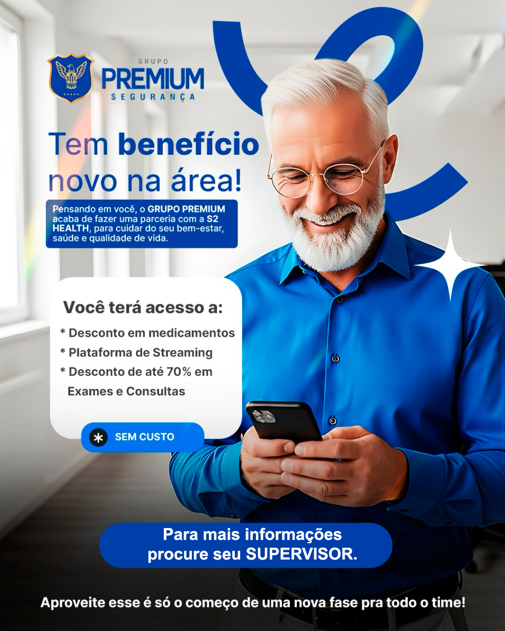 O Premium Valoriza chegou com mais uma vantagem pra você! Agora, através da nossa parceria com a S2 Health, você pode contar com benefícios que trazem mais saúde, bem-estar e economia. Plataforma de streaming inclusa Até 70% OFF em exames e consultas Tudo isso sem custo!