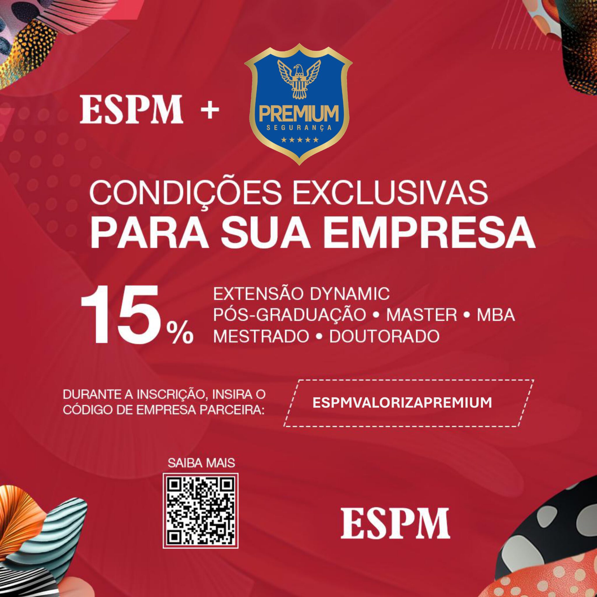 A Premium Segurança firmou uma parceria de excelência com a ESPM (Escola Superior de Propaganda e Marketing) . Essa é a sua chance de ter acesso a condições exclusivas para sua empresa em cursos de alto nível, com um desconto especial.